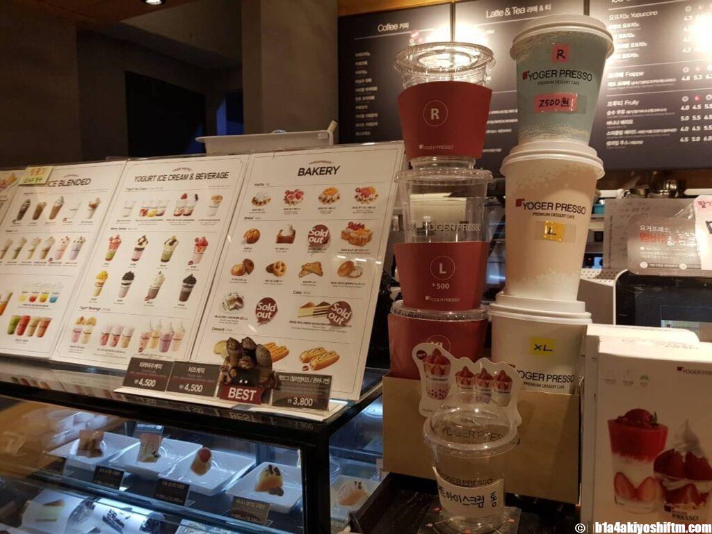 観光客が多い店舗だと、わかりやすいようにメニューが英語表記+絵になっているので、指差しで頼めると思います。飲み物のサイズも分かりやすいようにカップにサイズと料金のテプラが貼ってありました!(東大門歴史文化駅から歩ける店舗の写真です)