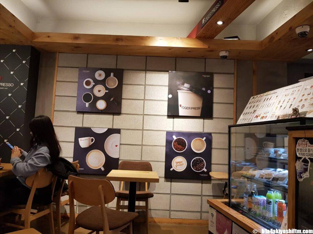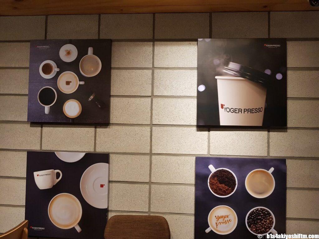 シックな壁にコーヒーの絵が飾ってあるのが、個人的に好きです。コーヒーにこだわっている感が伝わってきて韓国っぽいな〜と思えますよね。